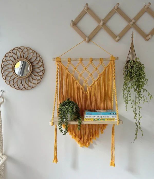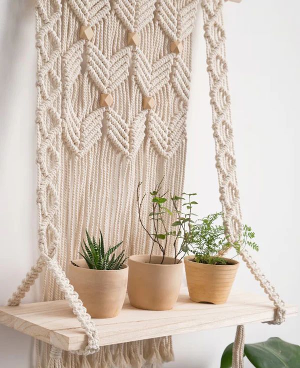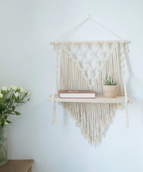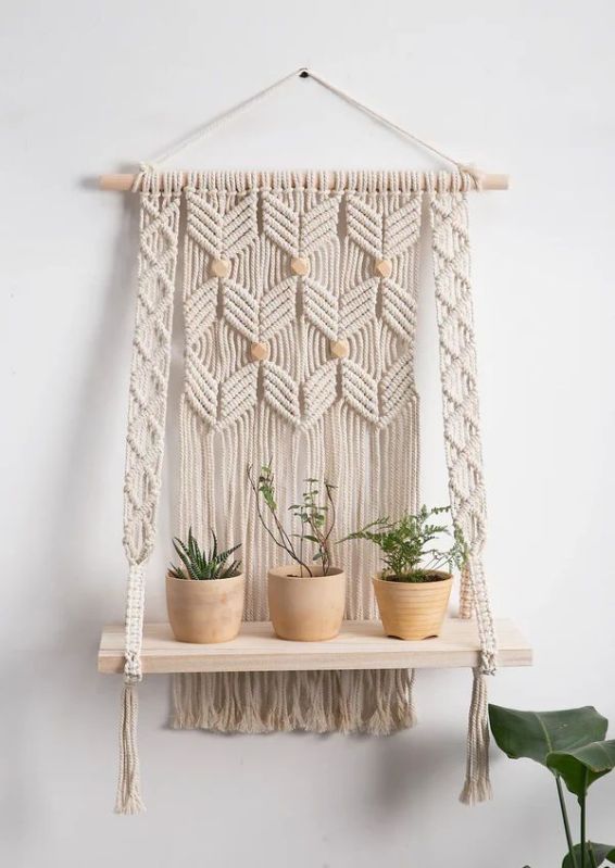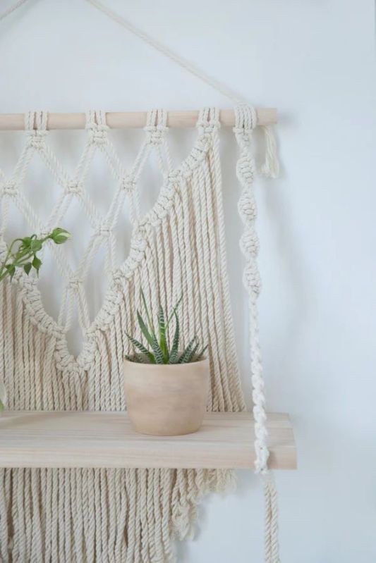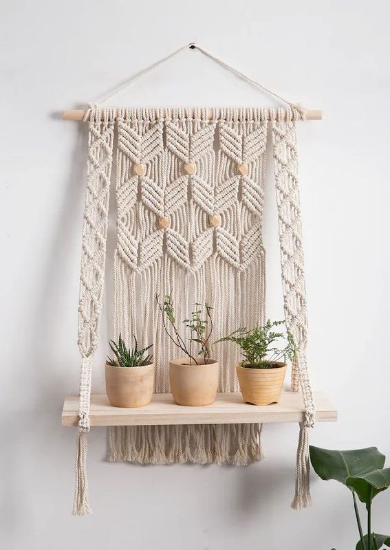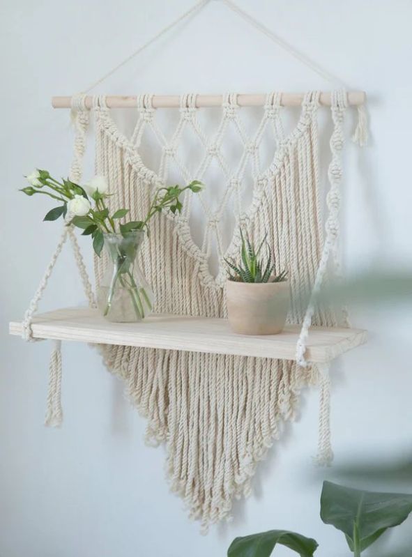 Home › Bohemian Living with Macrame Art › Handmade Macrame Wall Hanging Shelf